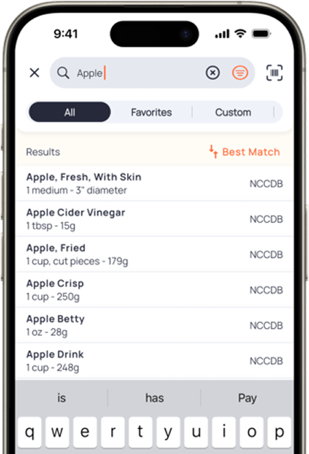 Easily add food by using our free Barcode Scanner or select from a database of over 1M verified foods.